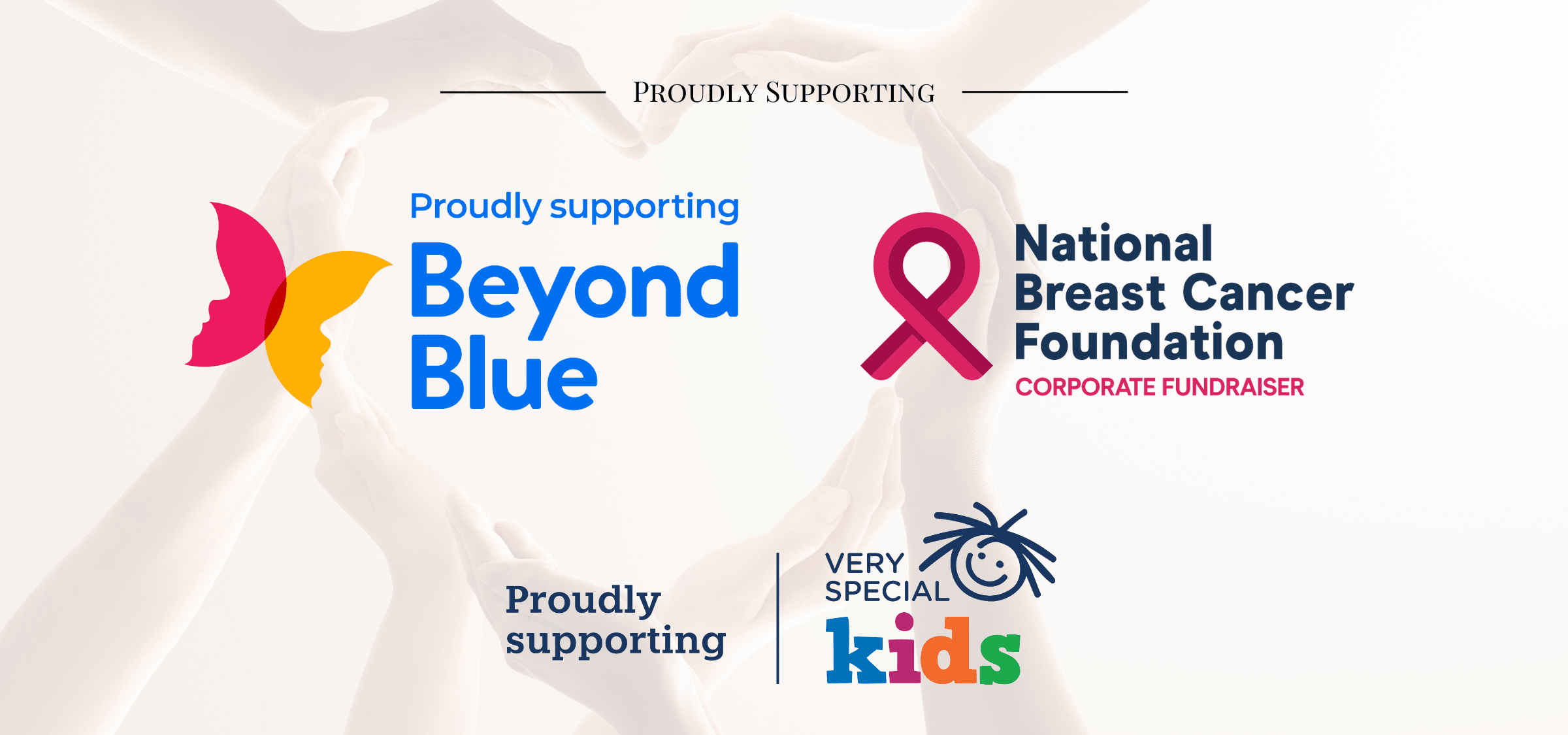 Together we help support the Nation Breast Cancer Foundation, Beyond Blue & Very Special Kids to help all Aussies in need.